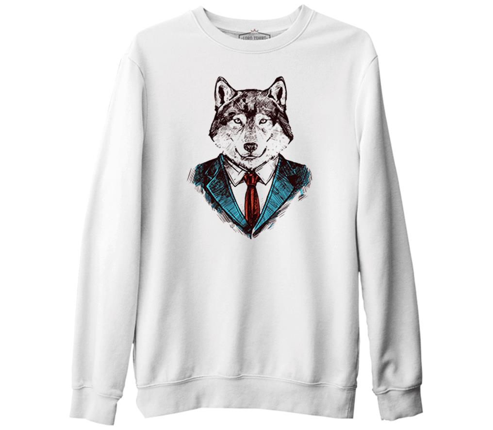 Mr. Wolf - Kurt Beyaz Erkek Kalın Sweatshirt