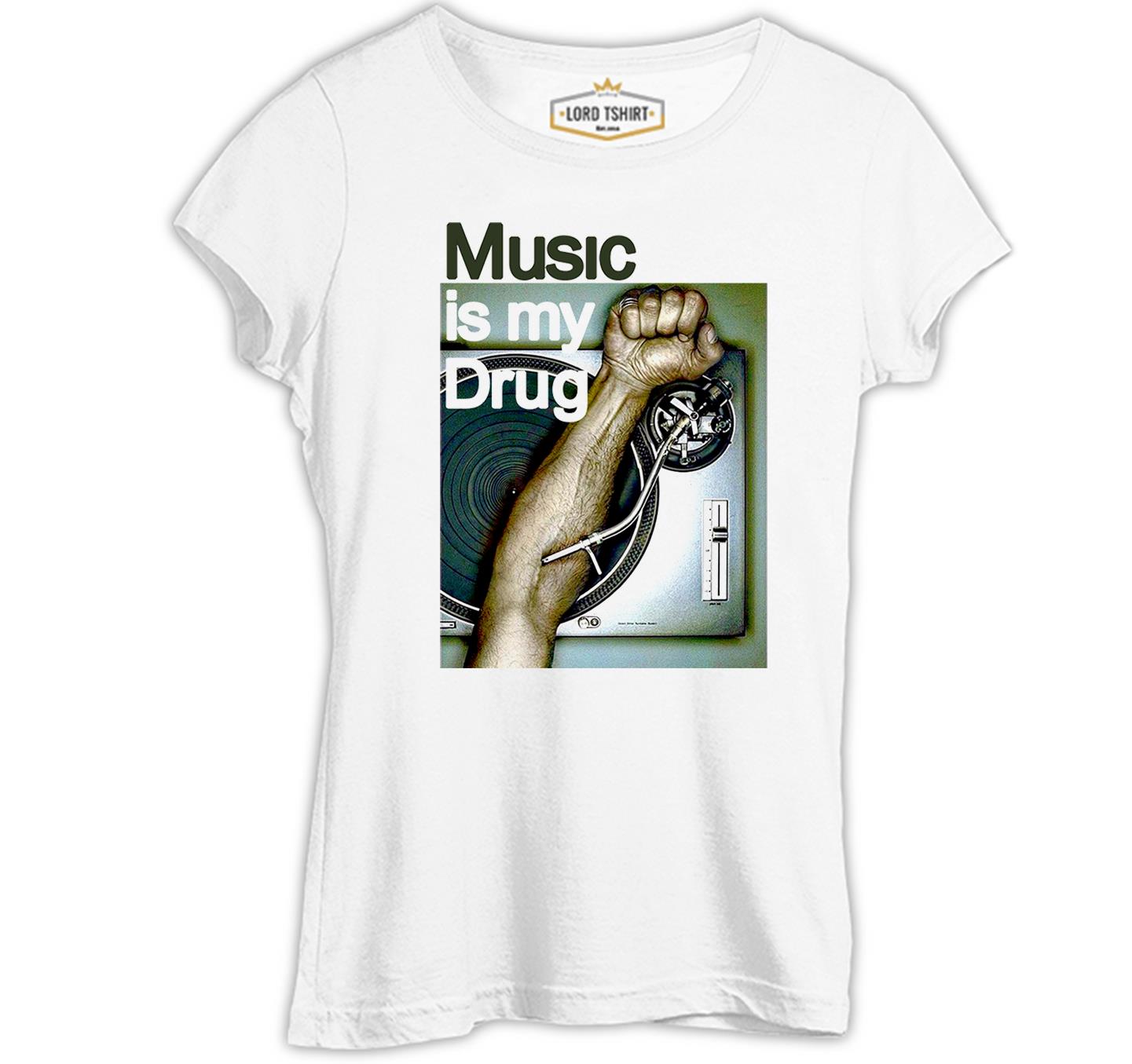 Music is my Drug Beyaz Kadın Tshirt