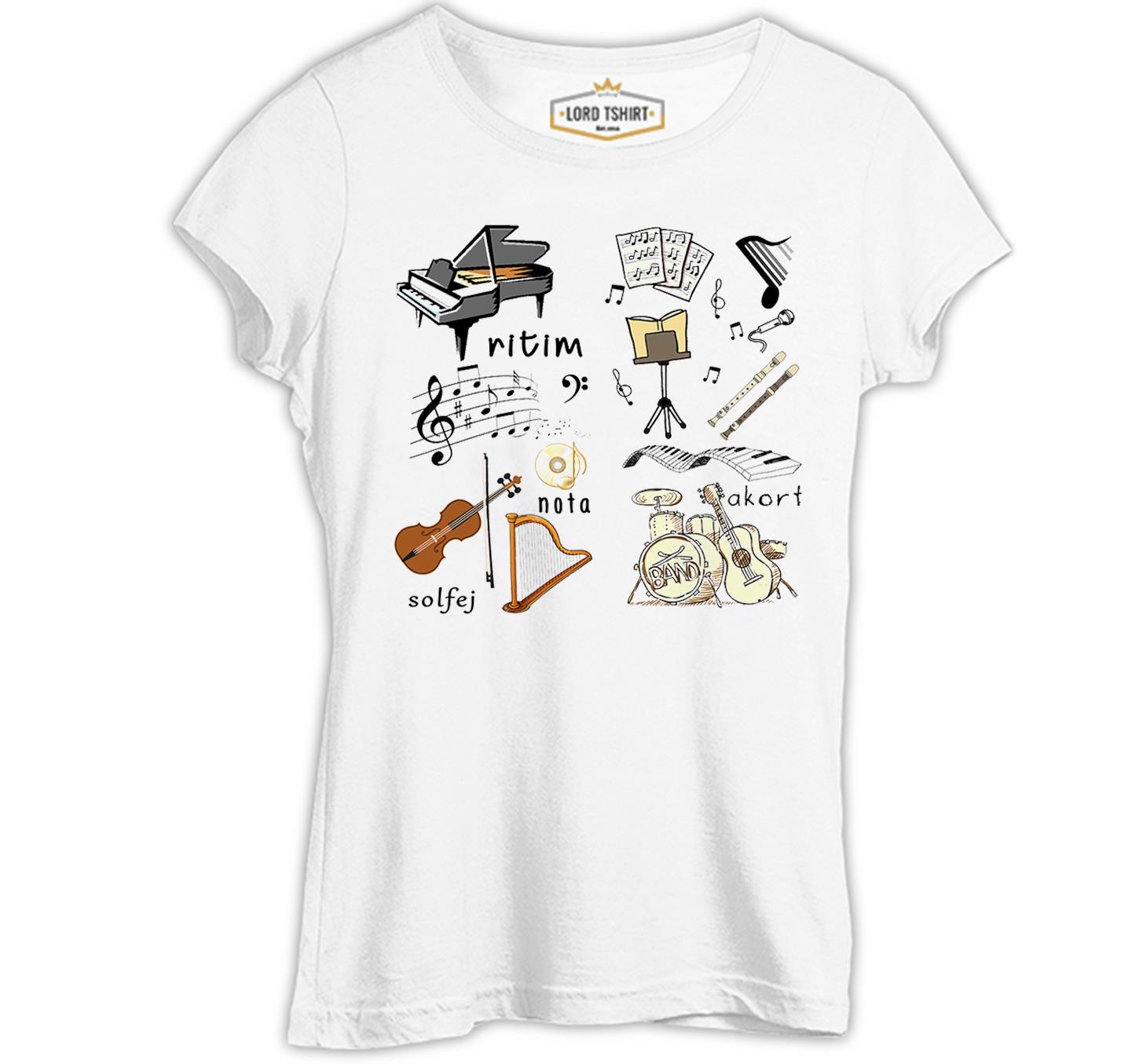 Müzik - Akort Beyaz Kadın Tshirt