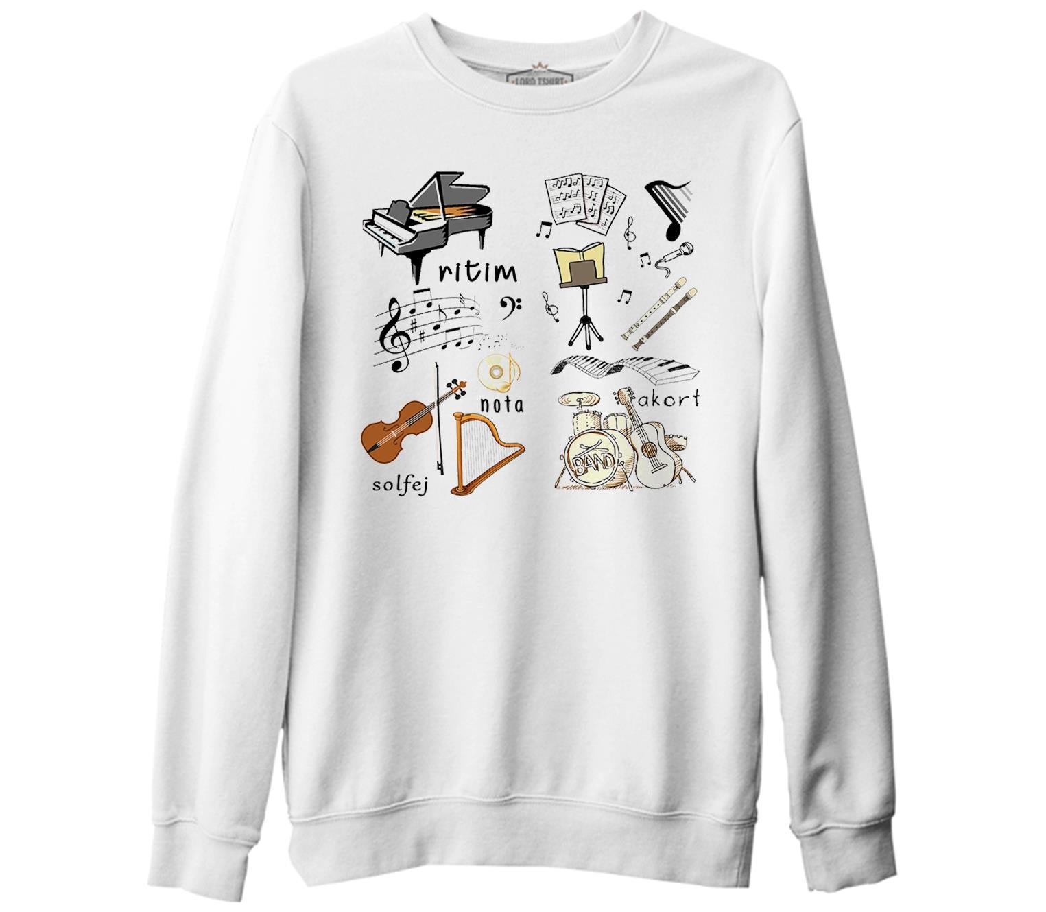 Müzik - Akort Beyaz Kalın Sweatshirt