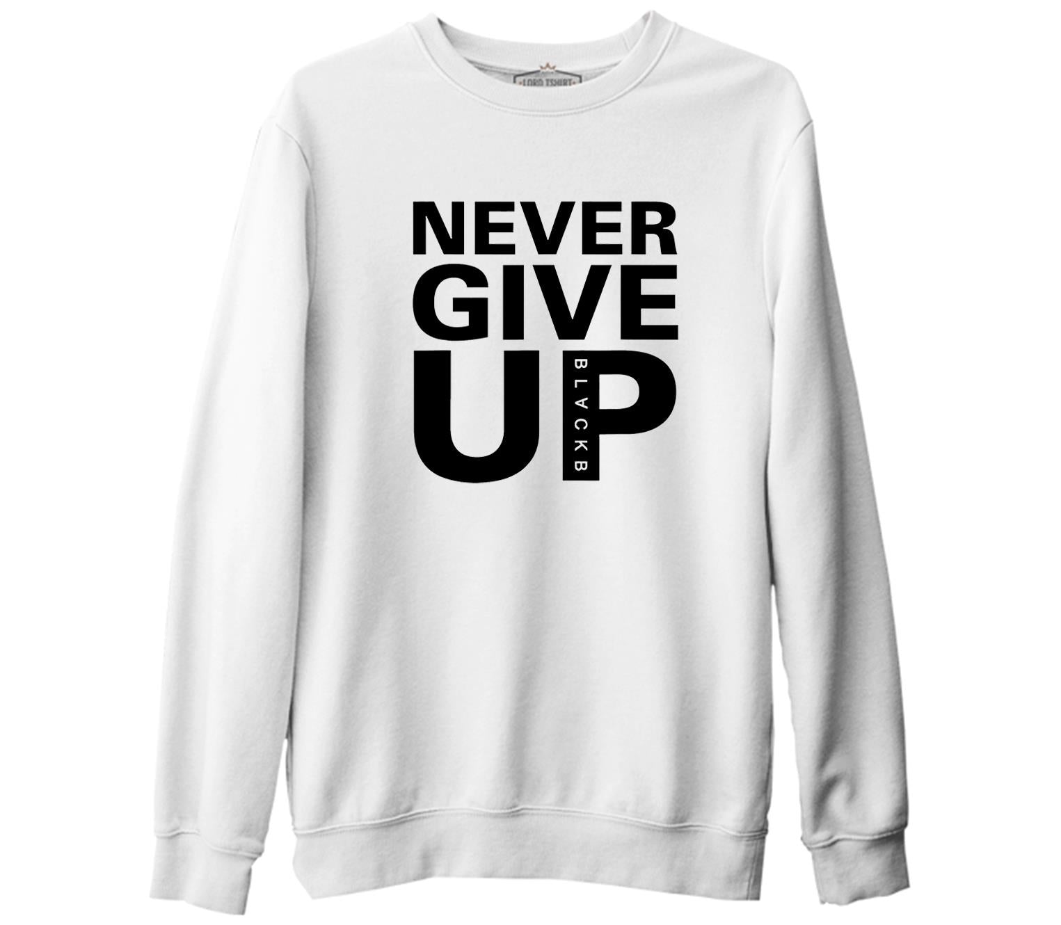 Never Give Up Black Beyaz Kalın Sweatshirt