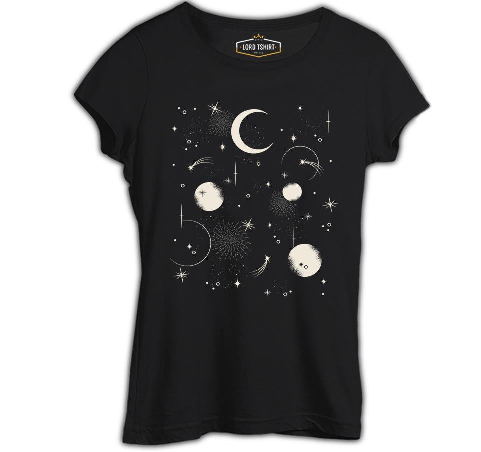 Night Sky with Moon and Stars Siyah Kadın Tshirt