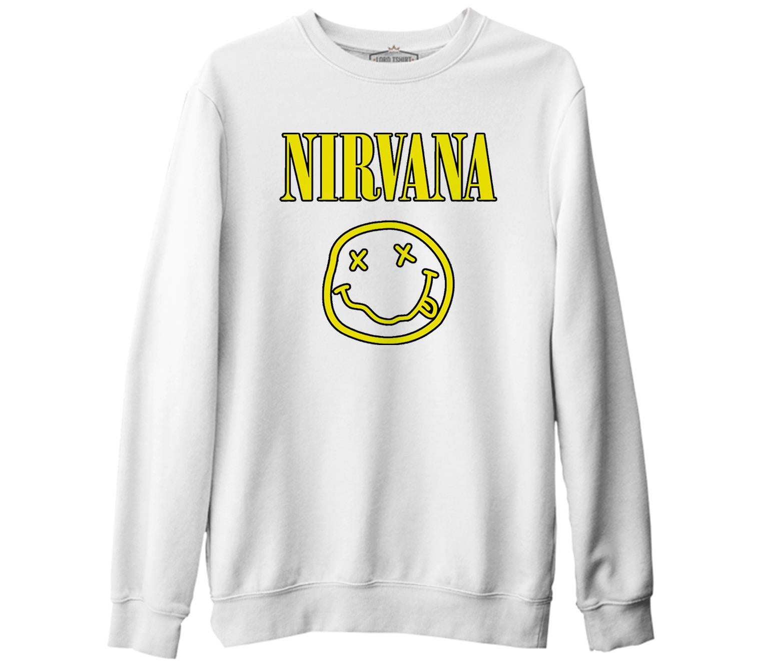 Nirvana - Logo 2 Beyaz Kalın Sweatshirt