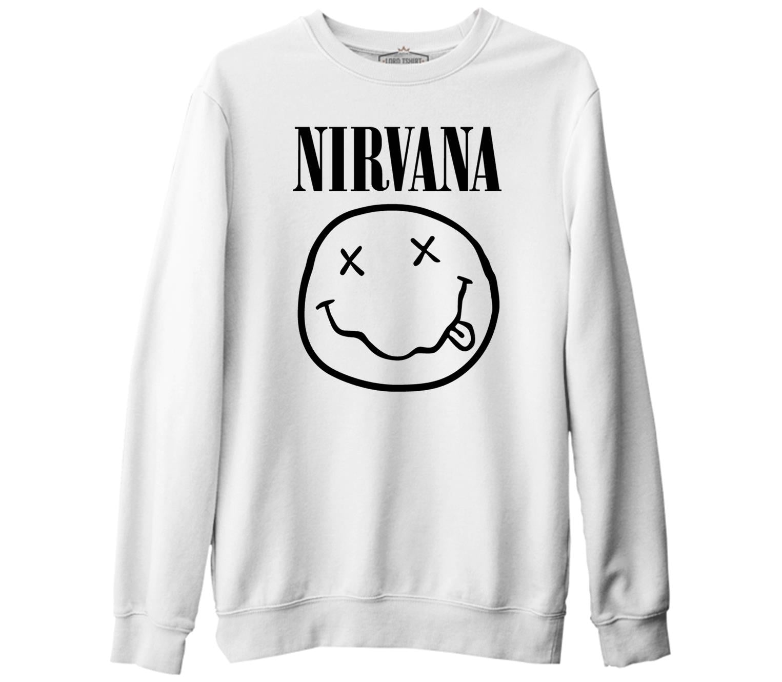 Nirvana - Logo Beyaz Kalın Sweatshirt