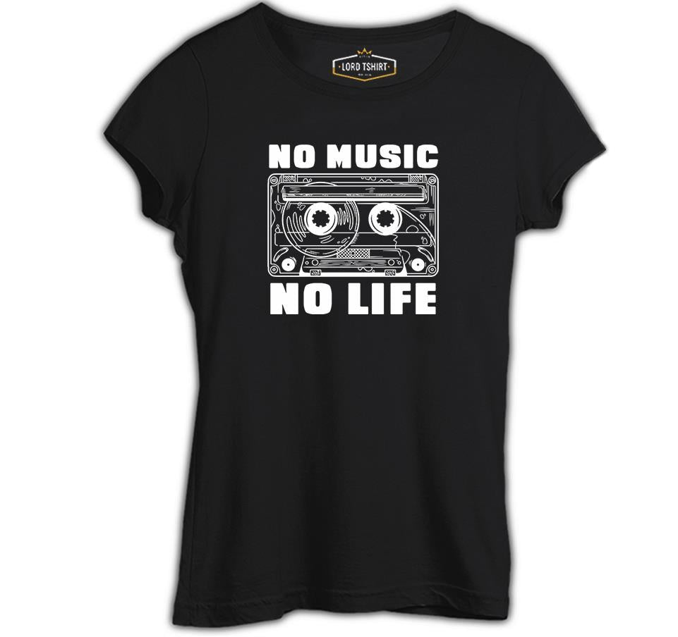 No Music No Life Cassette Tape Siyah Kadın Tshirt