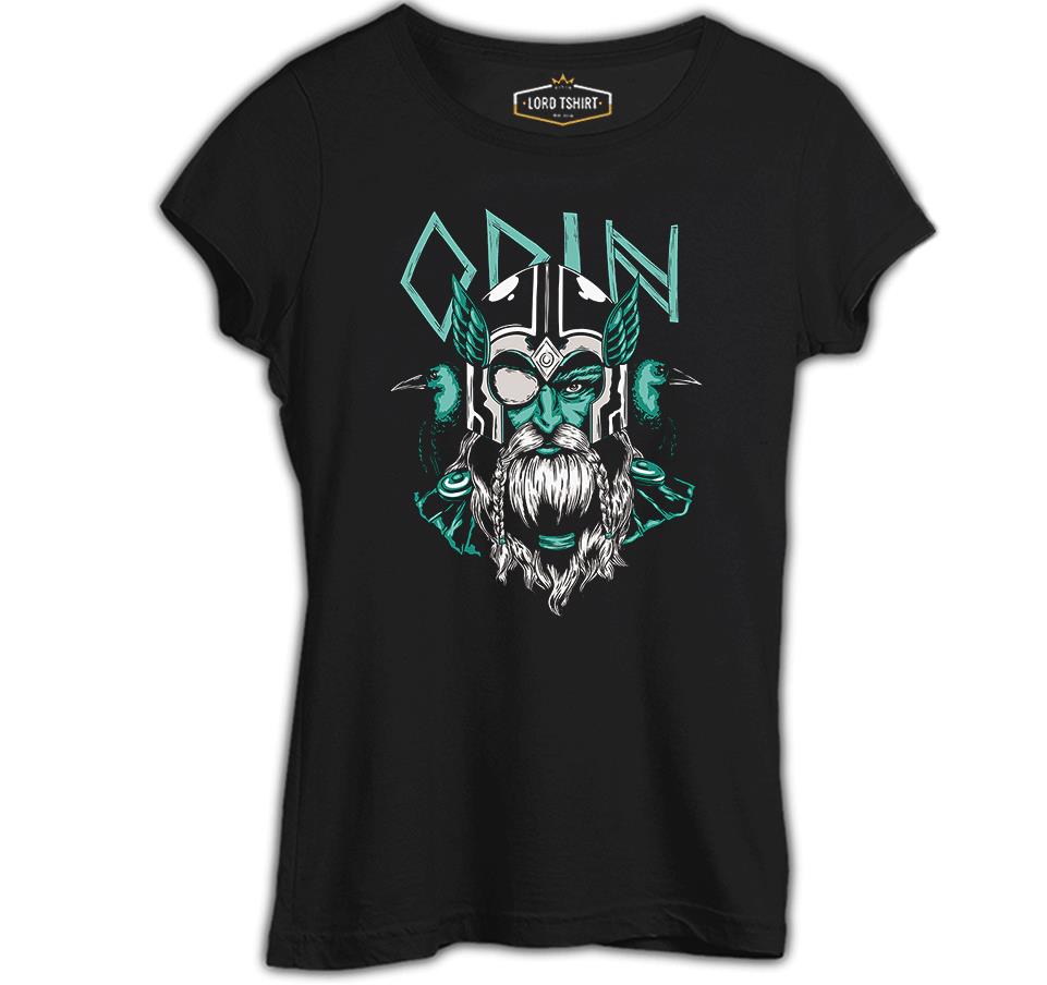 Odin Viking with Raven Birds Siyah Kadın Tshirt