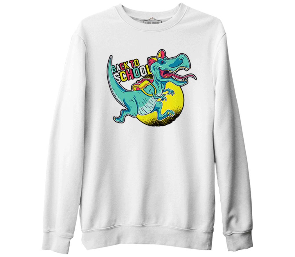 Okula Dönüş - Dinazor Beyaz Erkek Kalın Sweatshirt