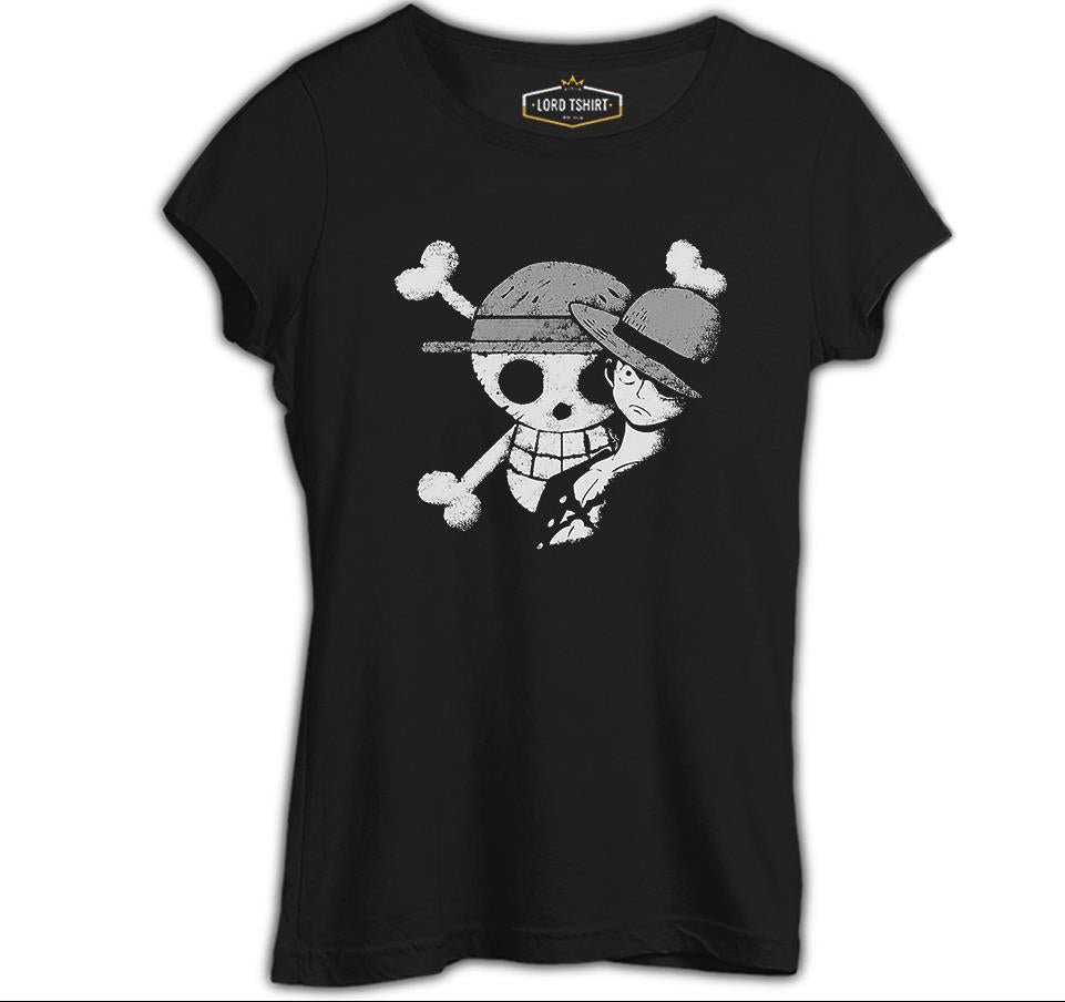 One Piece - Luffy Straw Hat 4 Siyah Kadın Tshirt