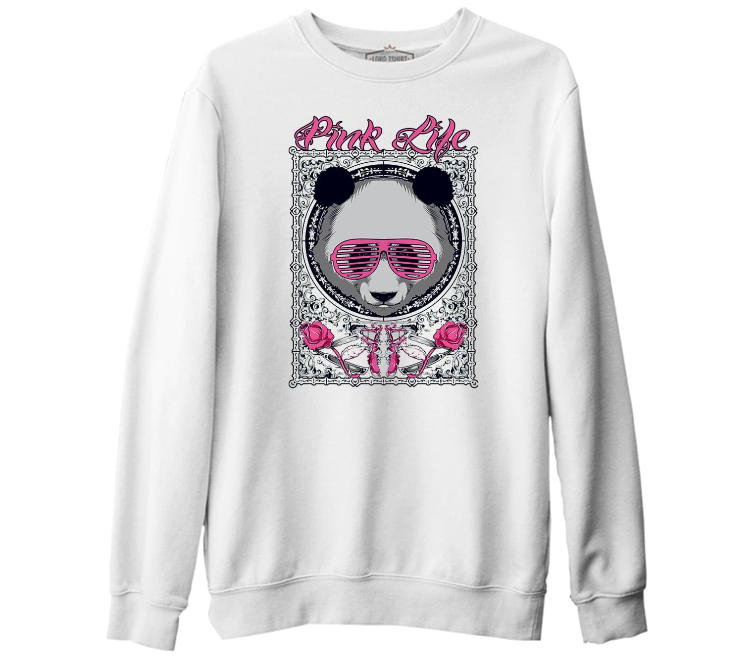Panda - Pembe Beyaz Kalın Sweatshirt