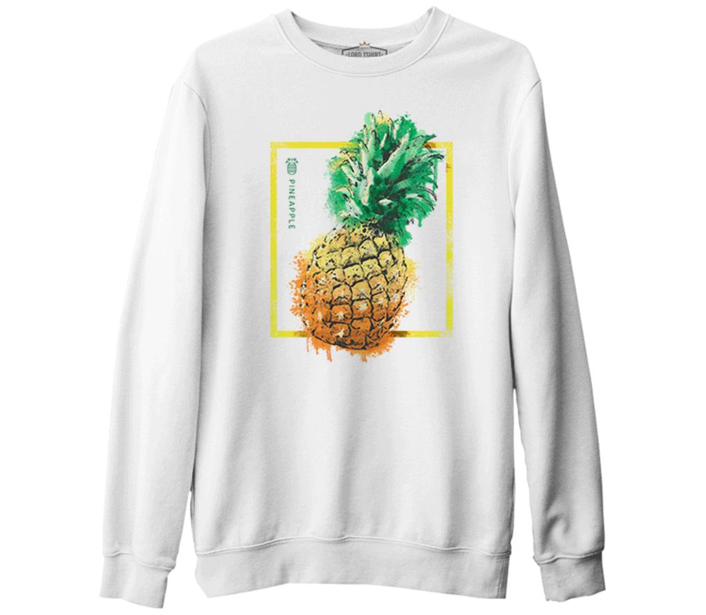 Pineapple in Front of a Square Beyaz Erkek Kalın Sweatshirt