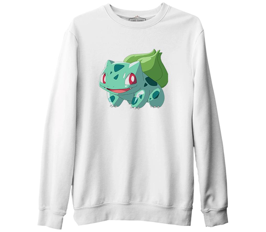 Pokemon - Bulbasaur Beyaz Kalın Sweatshirt