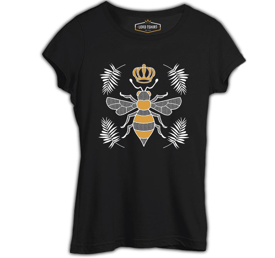 Queen Bee and Leaves Siyah Kadın Tshirt
