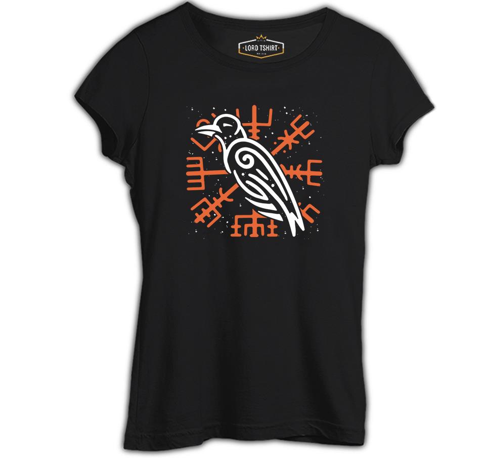 Raven Bird and Viking Sign Background Siyah Kadın Tshirt