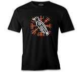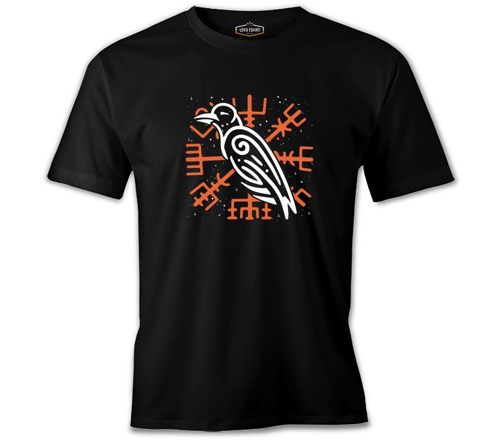 Raven Bird and Viking Sign Background Siyah Erkek Tshirt