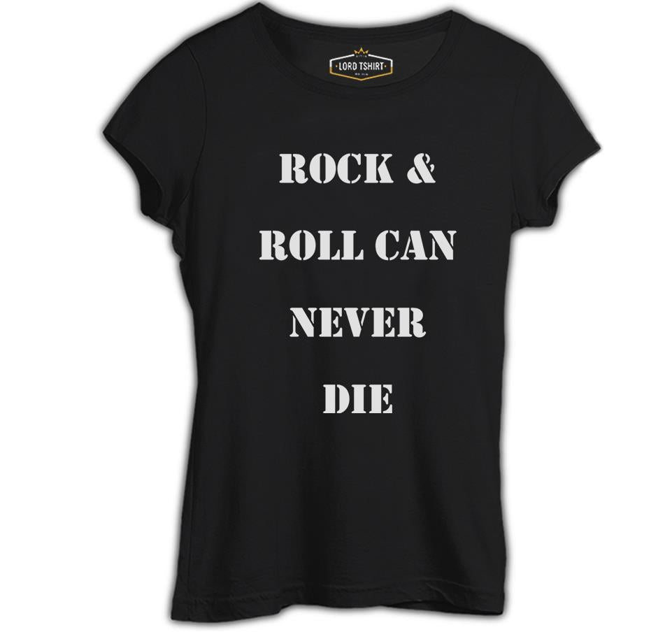 Rock & Roll Never Die Siyah Kadın Tshirt