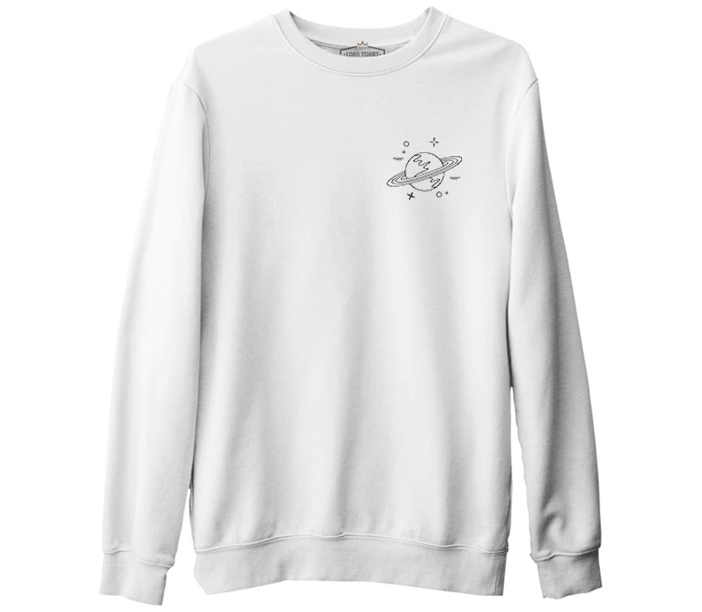 Saturn III Logo Beyaz Erkek Kalın Sweatshirt