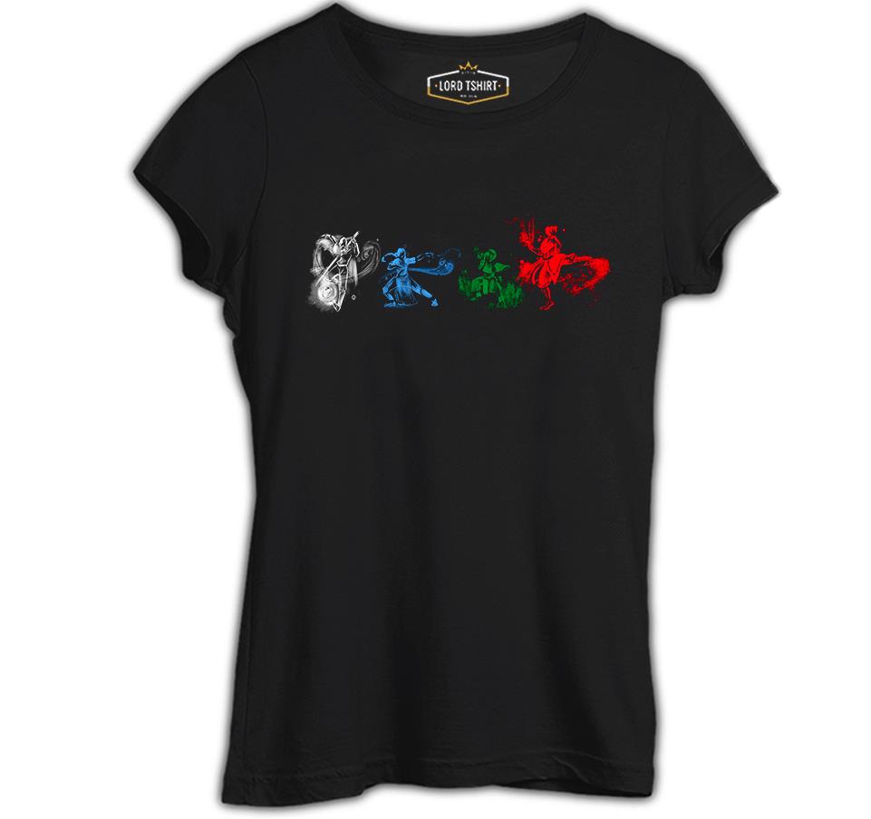 Son Hava Bükücü Aang Katara Prens Zuko Toph Beifong Siyah Kadın Tshirt