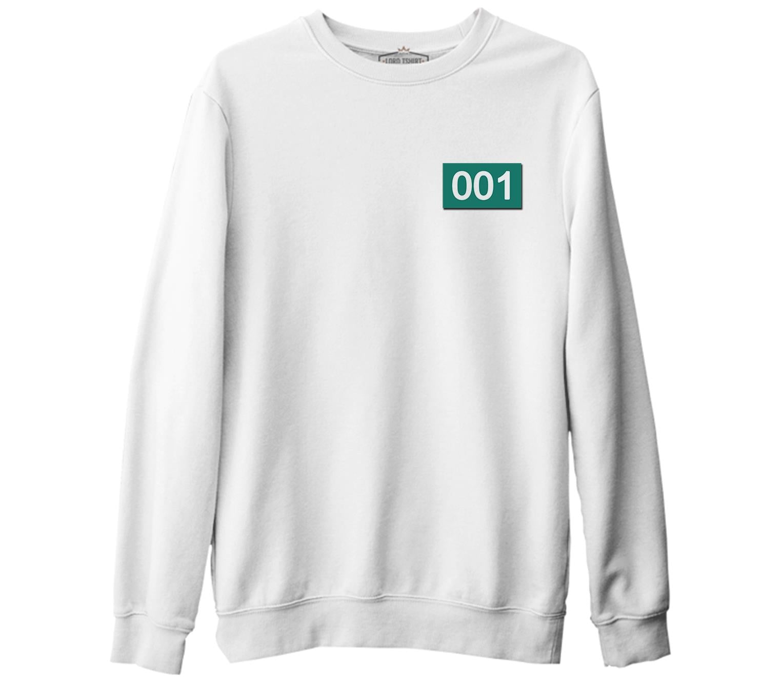 Squid Game - 001 Göğüs Logo Beyaz Erkek Kalın Sweatshirt