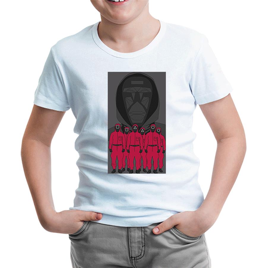 Squid Game - Maske Gri ve Askerler Beyaz Çocuk Tshirt