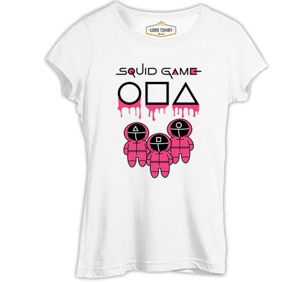 Squid Game - Maske Pembe Beyaz Kadın Tshirt