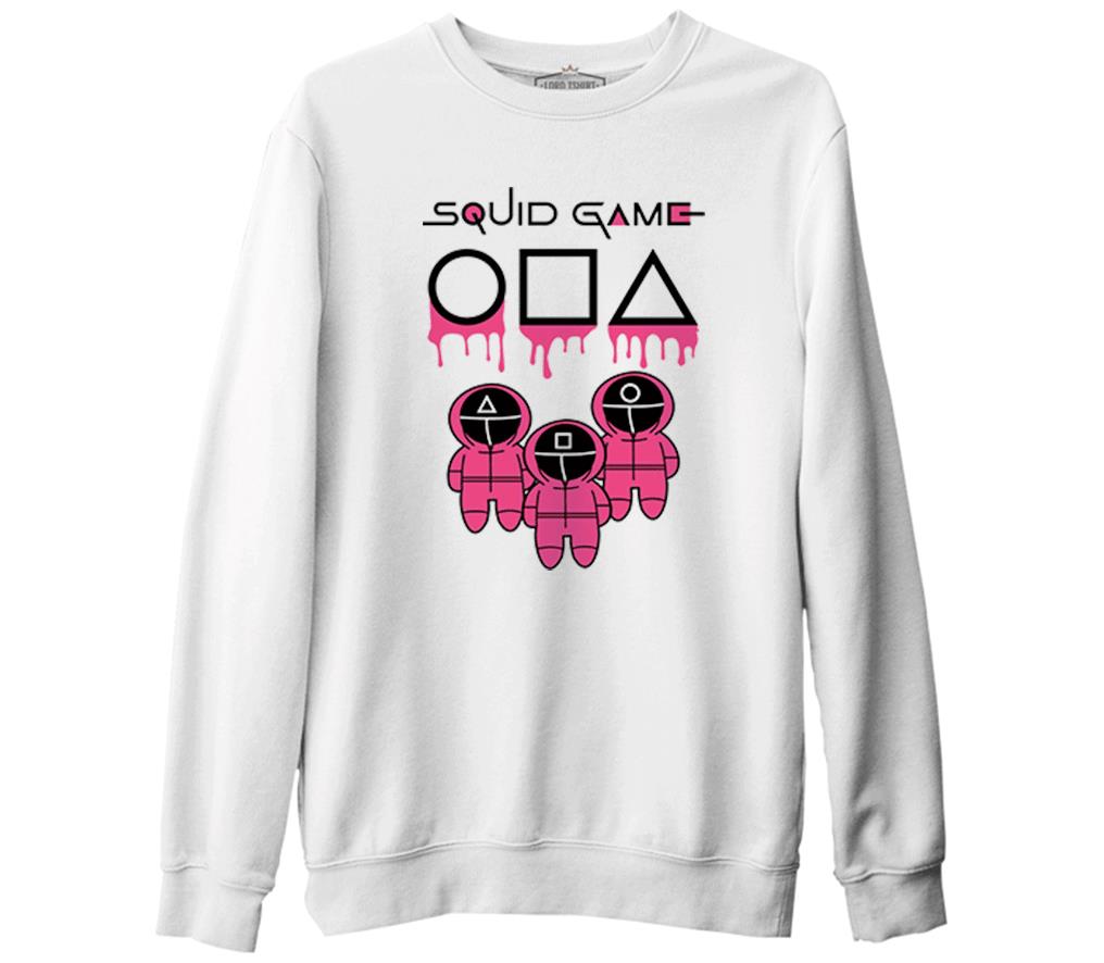 Squid Game - Maske Pembe Beyaz Erkek Kalın Sweatshirt