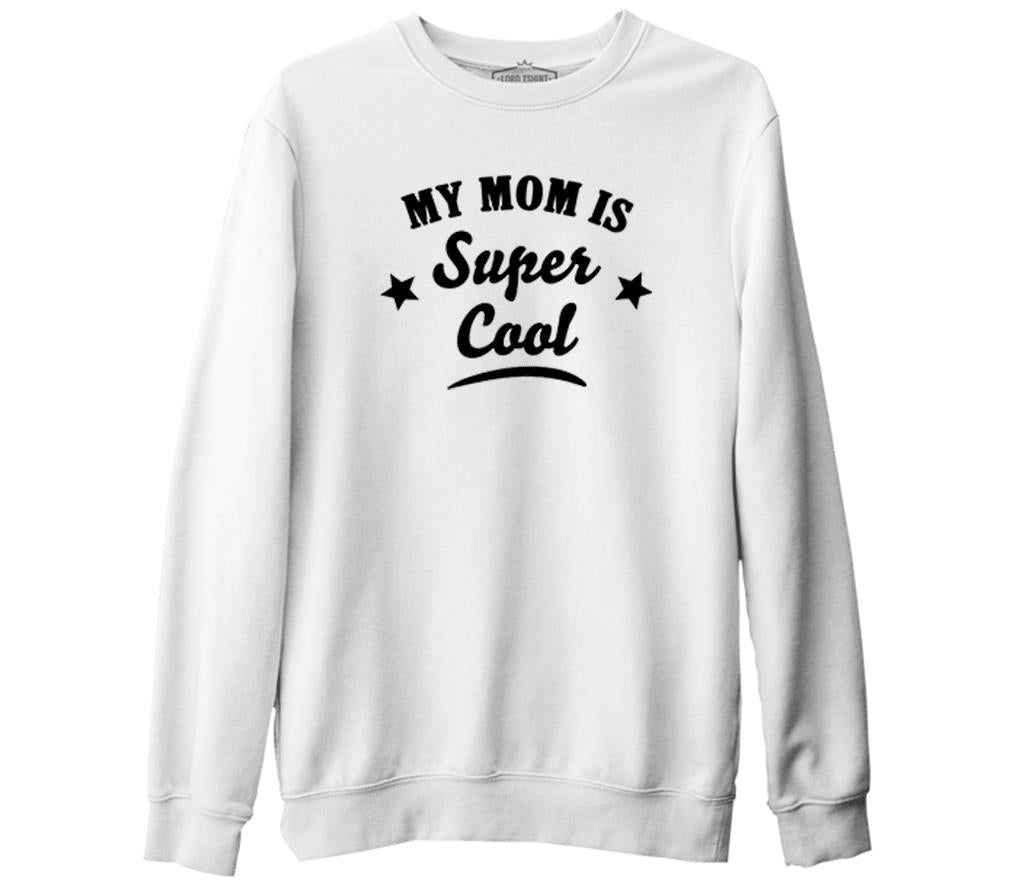 Super Cool Mom Beyaz Unisex Kalın Sweatshirt