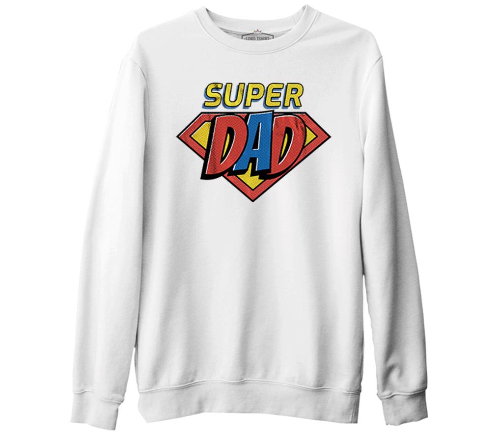 Super Dad Logo Beyaz Erkek Kalın Sweatshirt
