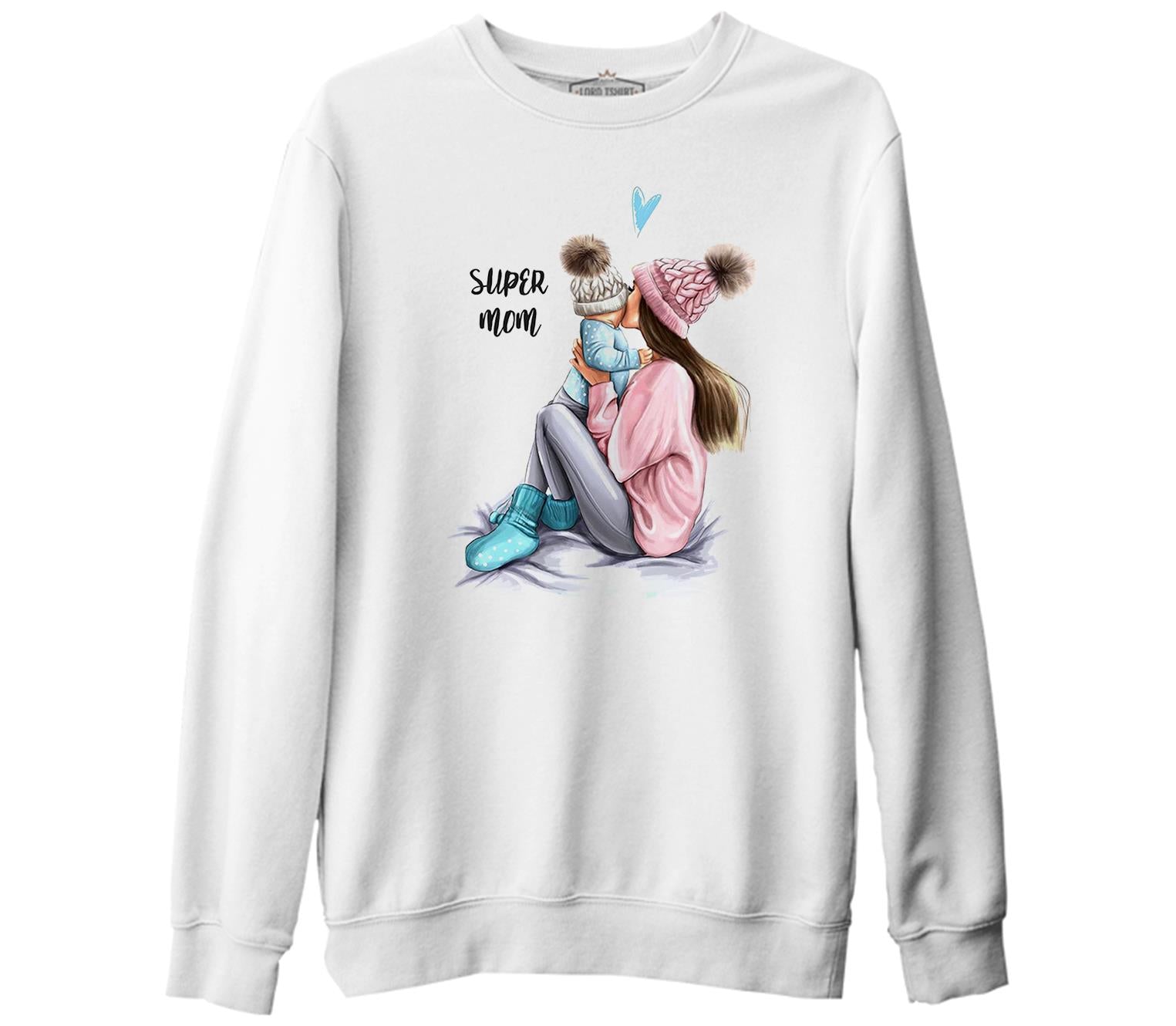 Super Mom Anneler Günü Beyaz Unisex Kalın Sweatshirt