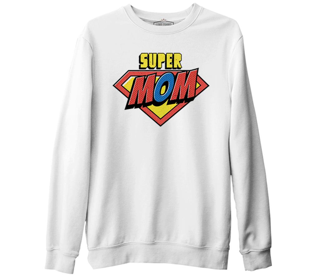 Super Mom Logo Beyaz Erkek Kalın Sweatshirt