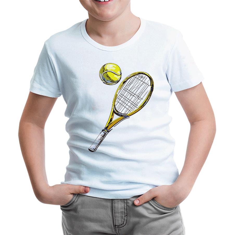 Tenis - Raket ve Top Beyaz Çocuk Tshirt