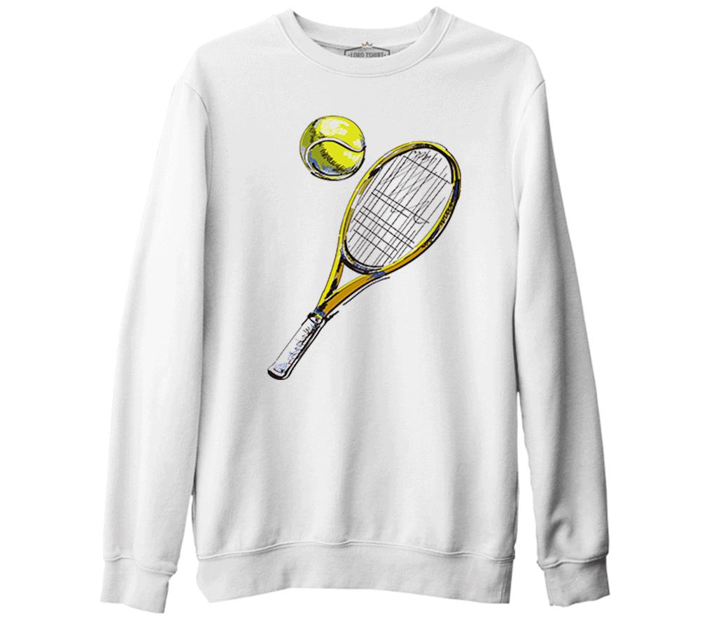 Tenis - Raket ve Top Beyaz Erkek Kalın Sweatshirt