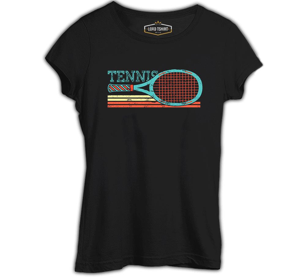 Tenis - Raket Yatay Siyah Kadın Tshirt