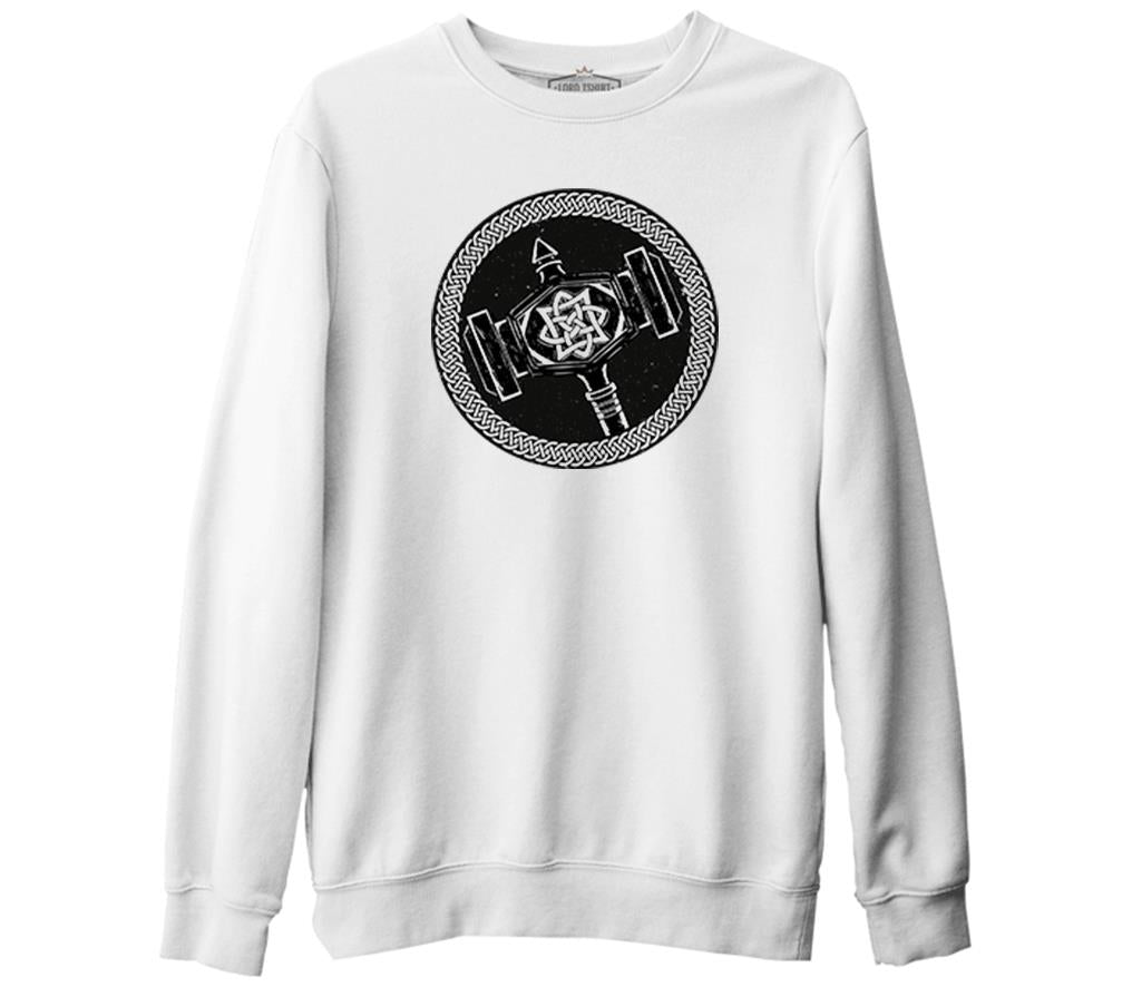 Viking Hammer Logo Beyaz Erkek Kalın Sweatshirt