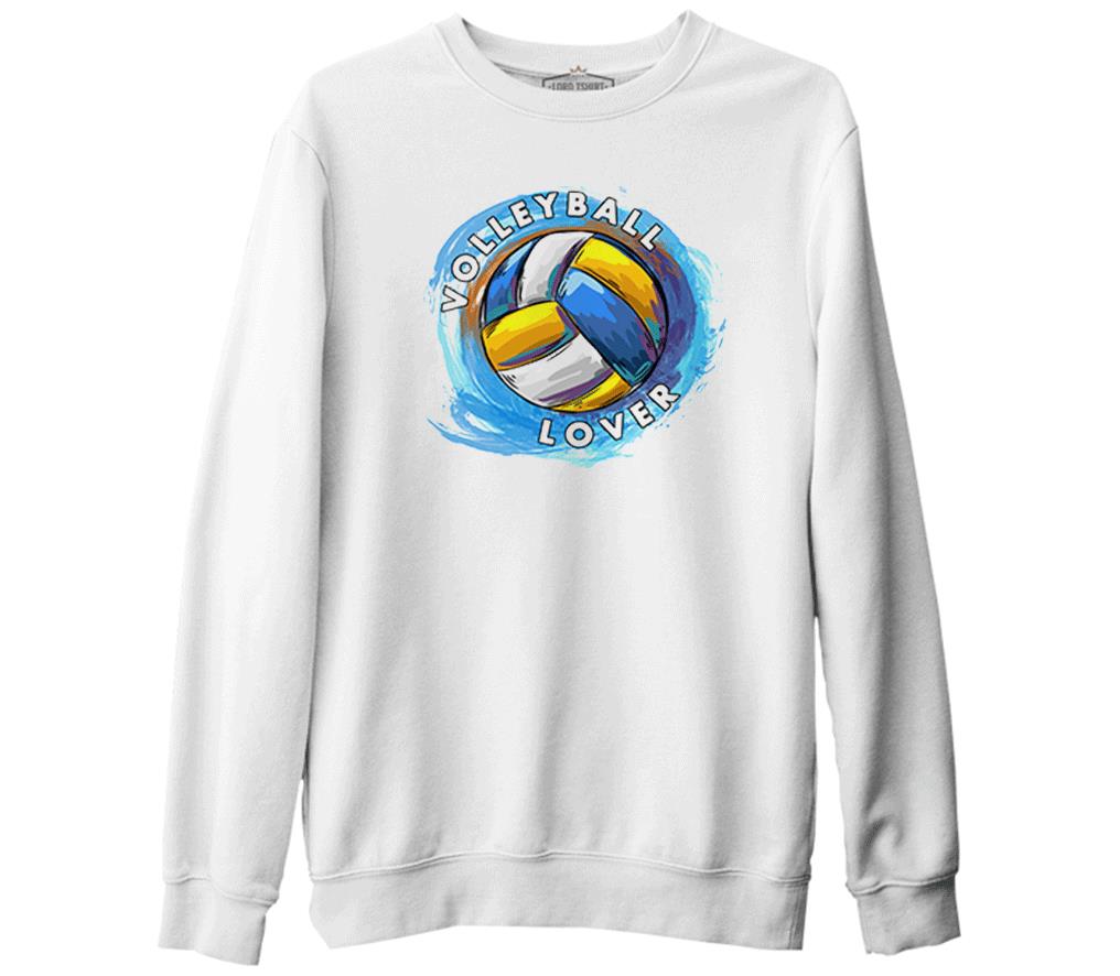 Voleybol Aşkı Beyaz Erkek Kalın Sweatshirt