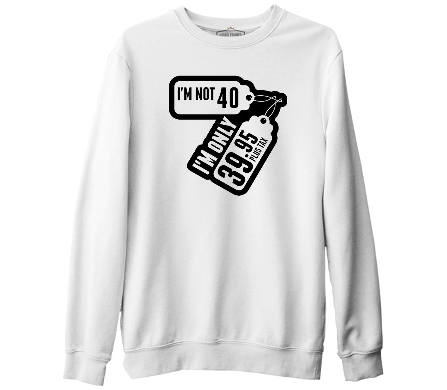 Yazı - I am not 40 Beyaz Kalın Sweatshirt