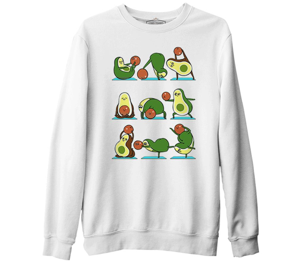 Yoga - Avocado Pozlar Beyaz Erkek Kalın Sweatshirt